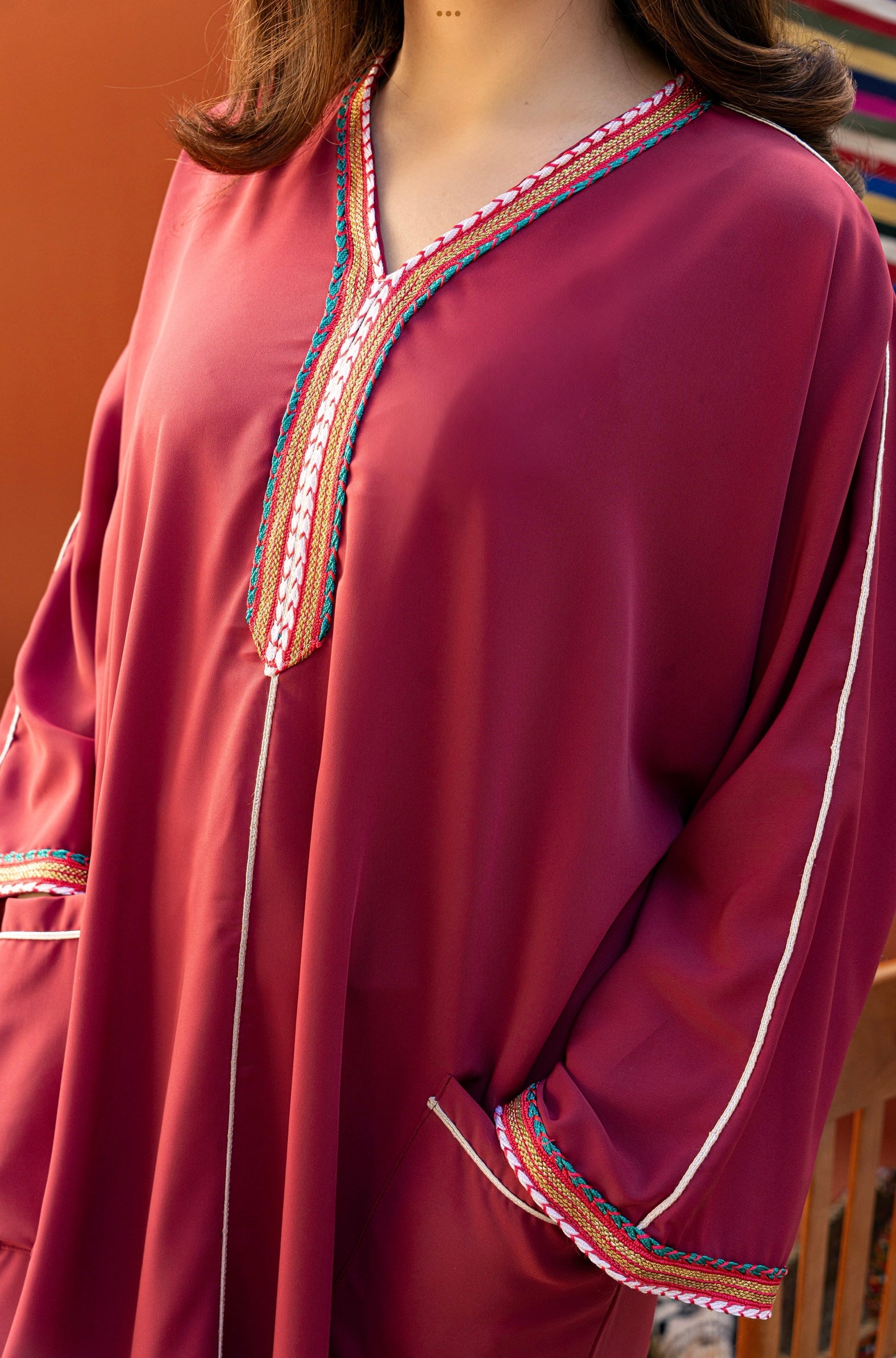 Djellaba à galon et poches pratiques, idéale pour un look à la fois raffiné et décontracté.