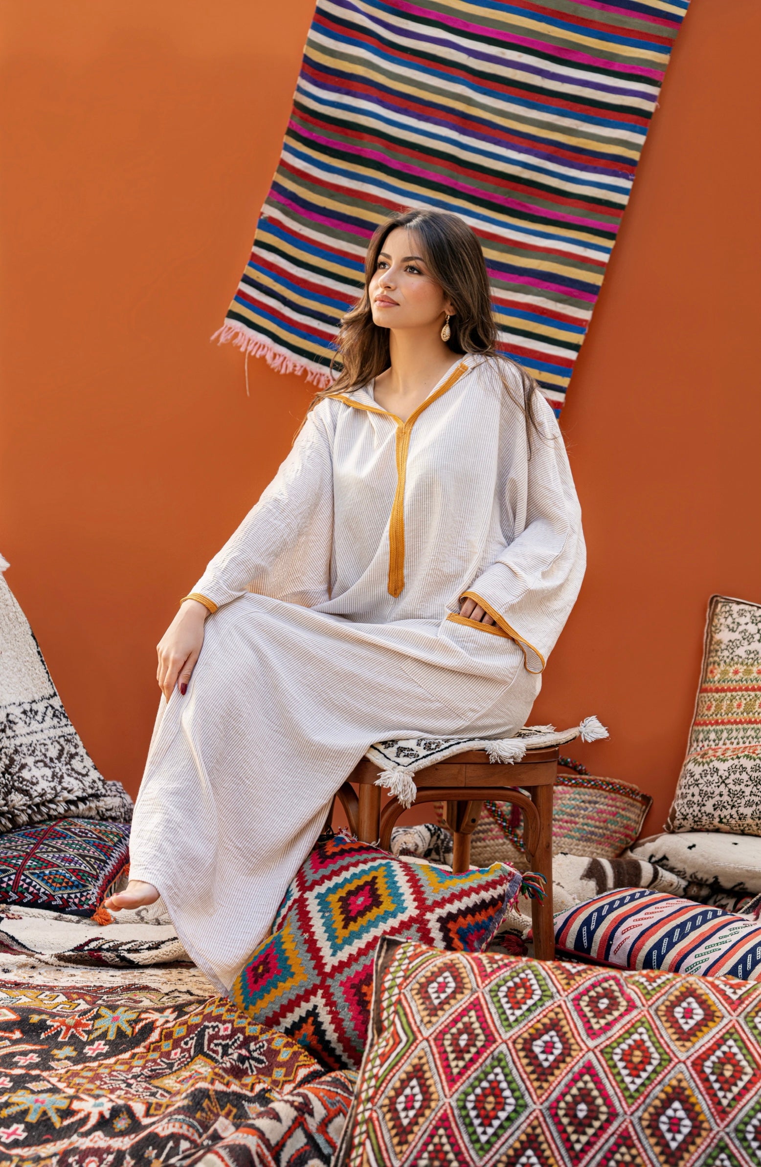 DJELLABA EN LIN À CAPUCHE BEIGE
