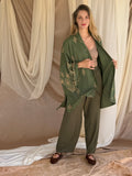 Ensemble en lin de qualité supérieure, kimono avec fentes sur les côtés et pantalon avec une ceinture à élastiques et cordon au niveau de la taille.