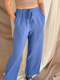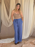 Pantalon avec une ceinture à élastiques et cordon au niveau de la taille.